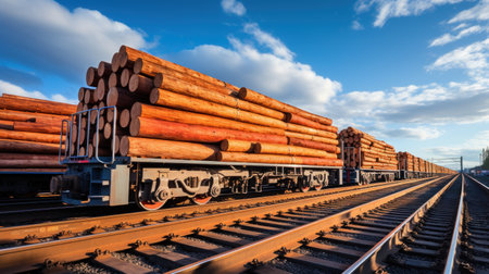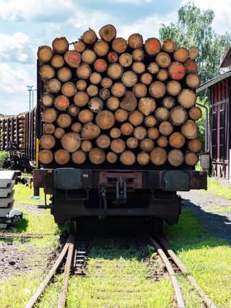 freight cars loaded with logs on railway tracks. transportation of felled forest