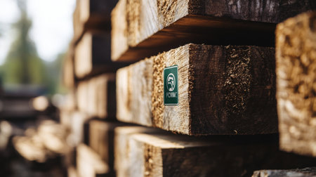 Close-Up of Stacked Timber Logs Ready for Processing in Woodland Area