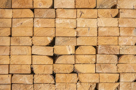 Wood texture background. Lumber industrial wood texture. End end made from machined wooden beam. Glued pine timber beams for wooden windows closeup.