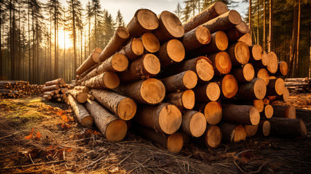 Log materials piled in the forest