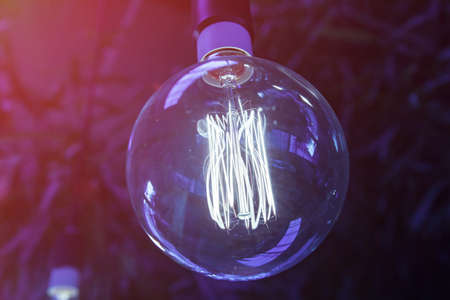 Beautiful retro luxury interior bulb lighting lamp decor glowing in dark. Crowd looking on bulbs. Selective focus