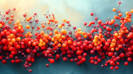 A vibrant close-up of red berries spread across a teal surface, creating a striking contrast and bold composition.