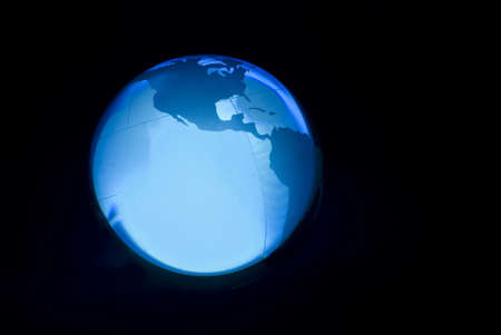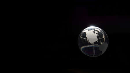 Glass crystal globe ball shine in dark background with black copy space internation global concept art
