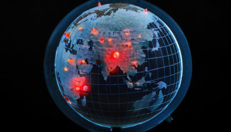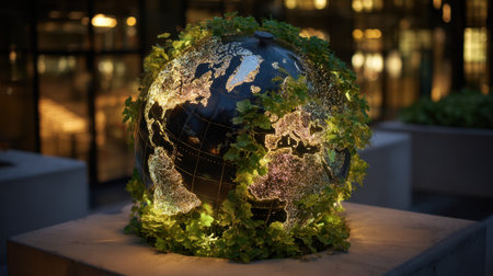 Close-up of a holographic globe displaying real-time environmental data analytics, illustrating innovations in climate monitoring.