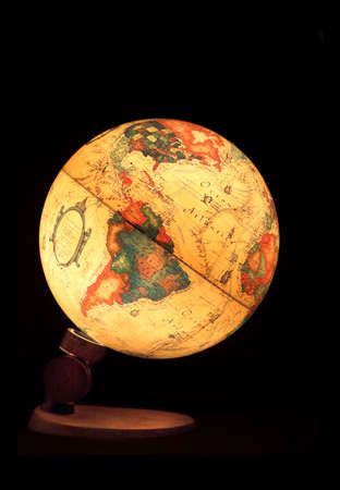 A globe beautifully lit from within highlights the continents and geographical details against a dark background, symbolizing global knowledge and exploration.