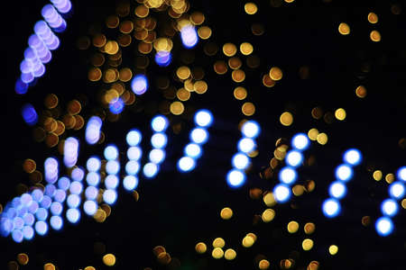 Abstract circular bokeh background of Christmaslight. bokeh from garlands. background for screensaver. Defocused lights. Blurred bokeh with yellow color lights