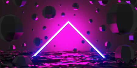 Neon triangle abstract background. 3d rendering, 3d illustration.