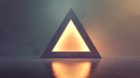 AI Generated. Glowing Neon Triangle Hovering Over Sleek Black Surface for Futuristic Fashion or Product Display