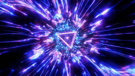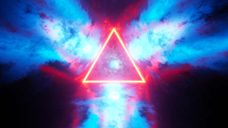 3d rendering. Futuristic abstract background with glowing neon triangle.