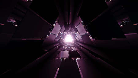 Glowing neon triangle shape abstract background. 3D Rendering.