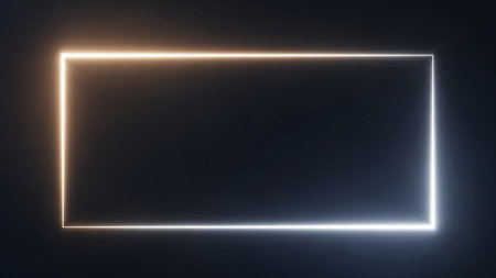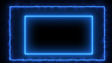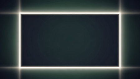 A dark background with a rectangular frame illuminated by bright neon light edges, creating a subtle glow.