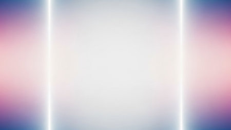 A soft vertical gradient transitioning from pink and purple to blue is framed by bright, thin white neon light beams on the sides.