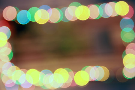 Multicolored defocused bokeh lights background. illuminated table