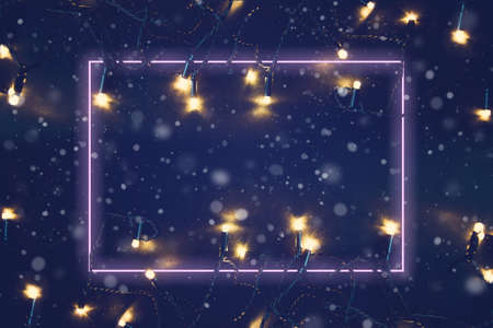 Christmas lights background. Merry christmas background with neon frame