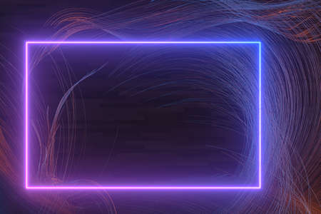 Neon light frame on dark blue background. 3D Rendering