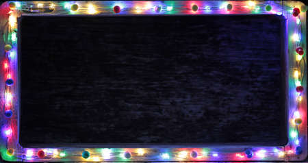 Christmas garland lights in the shape of the frame and place for text