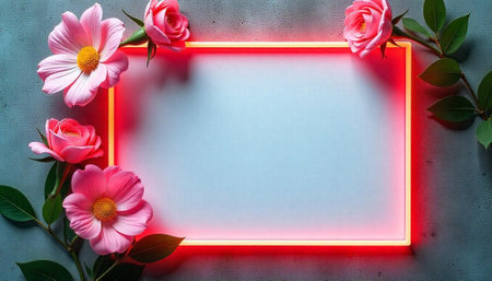 Floral Frame with Glowing Border and Textured Background