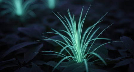 Neon glow highlighting minimal plant structure on dark backdrop, creating futuristic, artistic, and visually striking effect