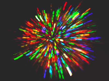A mesmerizing display of colorful lights bursts outward creating a sense of motion and energy. This captivating scene evokes feelings of excitement and wonder resembling a cosmic explosion.