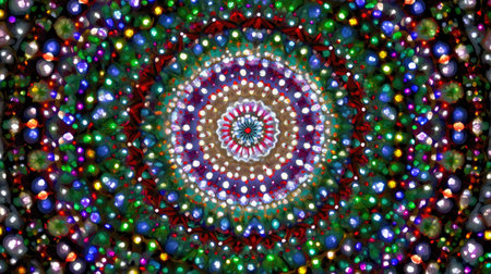 This mesmerizing kaleidoscope pattern showcases vibrant colors and glimmering lights, creating an intricate and dynamic visual experience perfect for artistic projects.