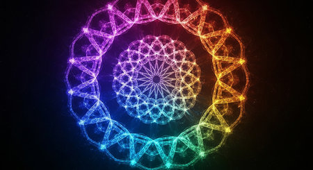 A mesmerizing neon mandala with intricate patterns and vibrant colors radiating energy and symmetry. The glowing lines and geometric shapes create a dynamic and visually stunning abstract artwork that captivates the viewer.. AI Generation