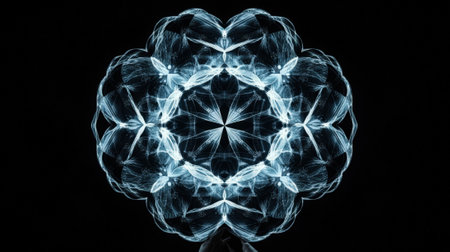 This striking image features an intricate blue line pattern forming a mesmerizing mandala design on a dark background, evoking feelings of tranquility and harmony.