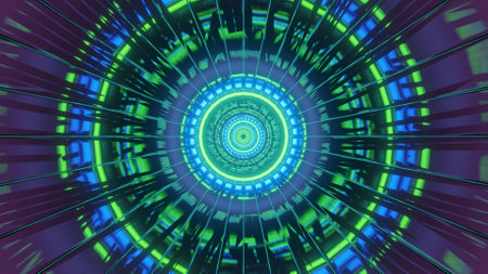 Explore a mesmerizing abstract digital illustration featuring concentric circles in vibrant green, showcasing intricate designs and a futuristic technological theme.