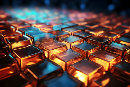 Abstract 3D background with square panels resembling solar panels close-up in vivid colors