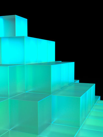 3D illustration of stacked cubes illuminated by fantastic light