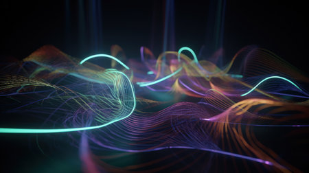 A mesmerizing abstract image featuring colorful digital lines and patterns glowing against a dark background, capturing the essence of technology and creativity.