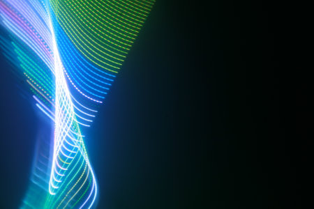 Captivating image showcasing vibrant light trails in a smooth, curving motion against a dark background, perfect for modern design projects, technology themes, and abstract concepts.