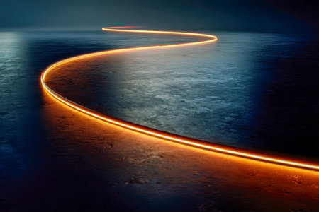 Glowing trails of light winding through the darkness AI generated