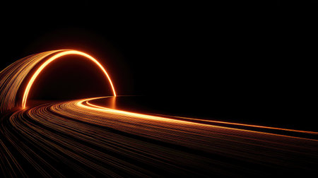 Smooth, glowing curve emerges against dark background, creating sense of motion and elegance. light reflects subtly on surface, enhancing visual appeal and depth