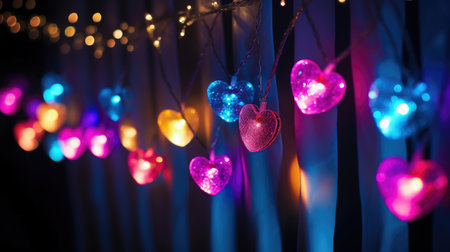 Fairy lights with colorful hearts