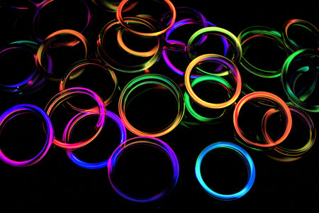 A vibrant collection of luminous rings, creating an energetic display.