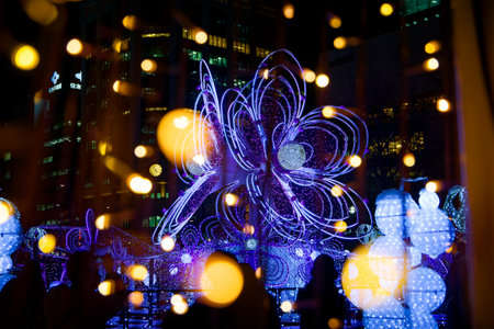 Christmas ilumination bokeh gights in the city