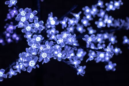 Luminous garland decorative flowers on a tree