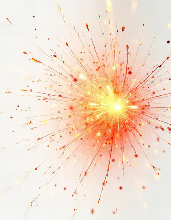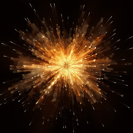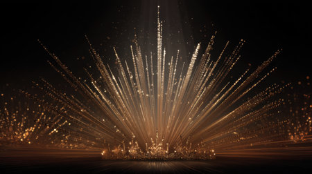 Dazzling explosion of light radiates outward, creating mesmerizing display of shimmering particles against dark background. This captivating visual evokes feelings of wonder and excitement