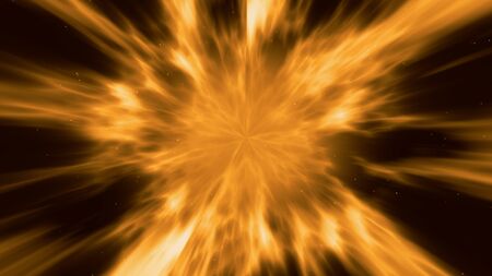 Golden explosion emitting glowing particles and light rays on a dark background, perfect for science fiction and fantasy projects