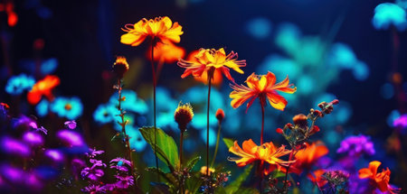 beautiful flowers in the garden at night,colorful flowers in the garden