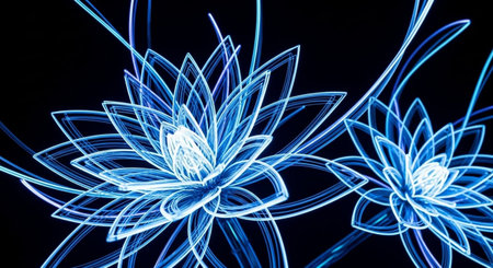 A stunning digital artwork showcasing glowing, translucent lotus flowers with intricate circuitry details.