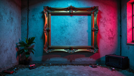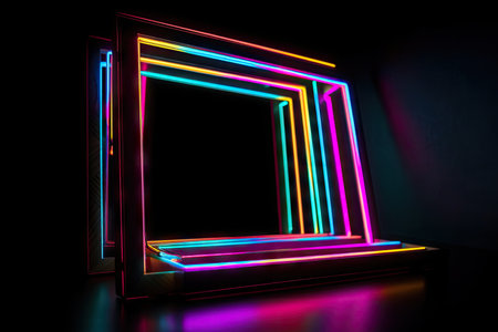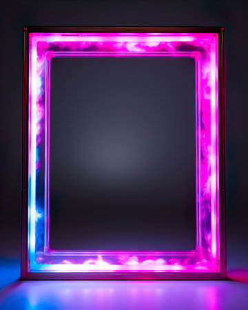neon frame mockup with a black background, showcasing the pop of color of the neon, created with generative ai