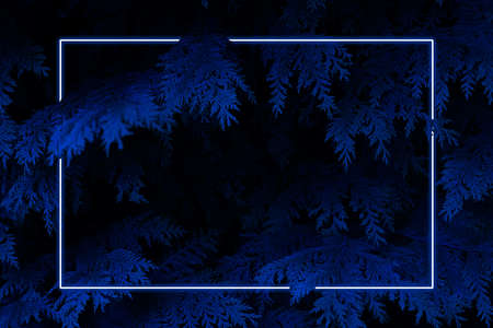 Leaves with neon light frame
