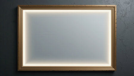 A sleek and dark background featuring a glowing frame, ideal for showcasing artwork, photography, or graphic design elements with an elegant minimalist style.