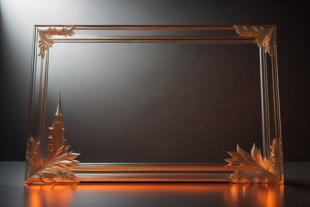 This image features a minimalistic empty glass frame against a dark background, emphasizing simplicity and modern design. Suitable for artistic and creative projects.