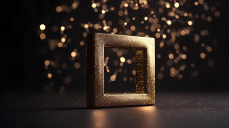 3d render of golden frame on a dark background with geometric shapes