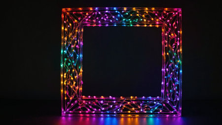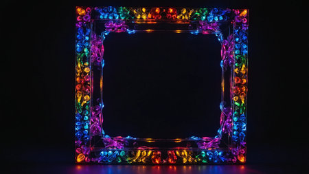 Neon frame with multicolored lights on a black background.