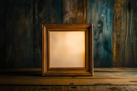 A vintage frame stands boldly against the backdrop of a tranquil lake during sunset. Soft golden light filters through, creating a magical atmosphere full of warmth and beauty.