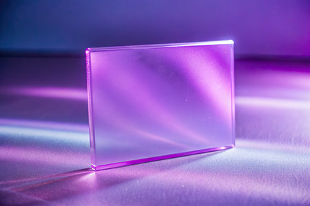 Translucent purple glass block on a glowing surface.