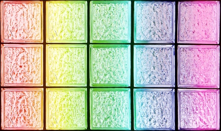 Abstract mosaic of vibrant translucent tiles, gradient colors, close-up